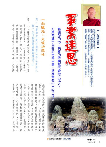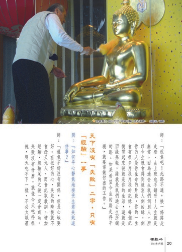 有很好的心,失敗的時候就不會怨天尤人。如果希望今生的路走得平穩,就要常做付出的工作。